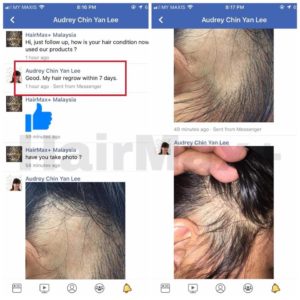 Testimonial for the month of DECEMBER 2018! Audrey has been suffering from Alopecia Areata for years and have not managed to find a solution for her problem until last September when she contacted us. After using a full set of our products for 2 months, she has gotten amazing results. We were overjoyed when we received an update from her. She has volunteered to share her testimonial to encourage more people with hair loss problem to step forward so they can be helped as well.